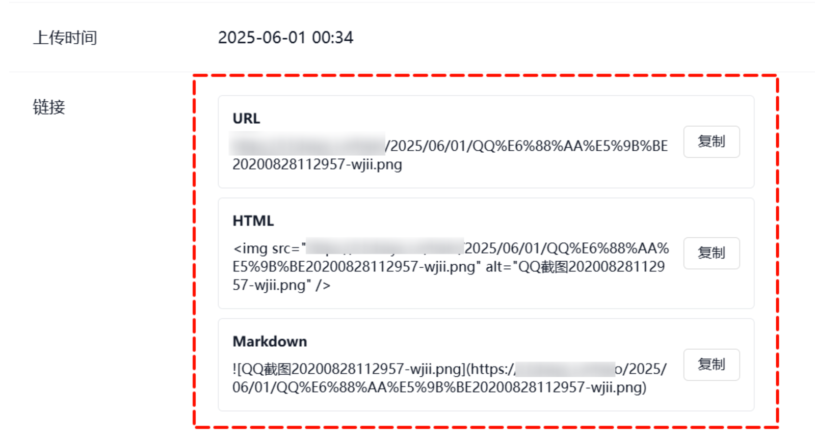 PS:可以上传文件进行测试,点击文件(域名)链接查看详情,检查是否能正常访问。