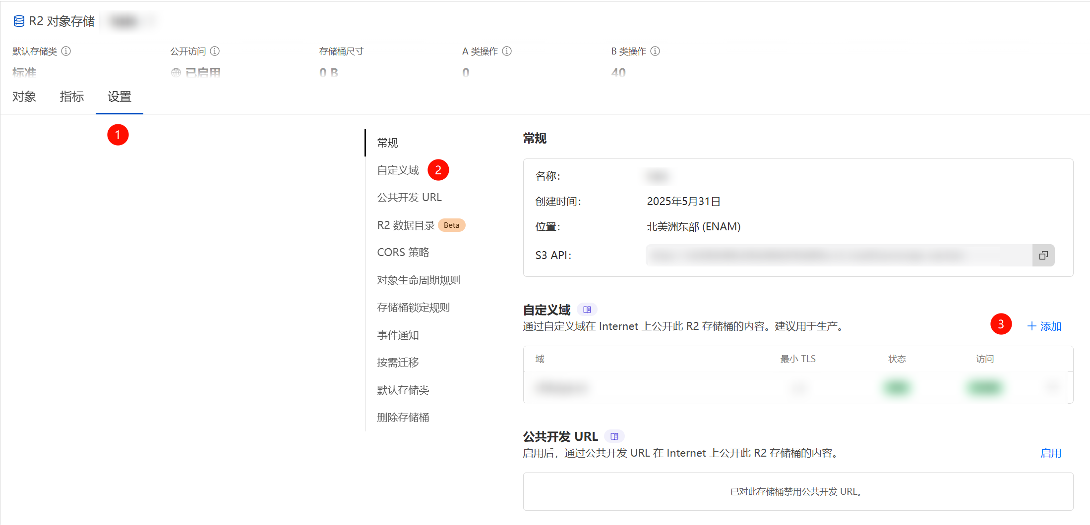2.在存储桶设置中,配置自定义域名,便于访问。