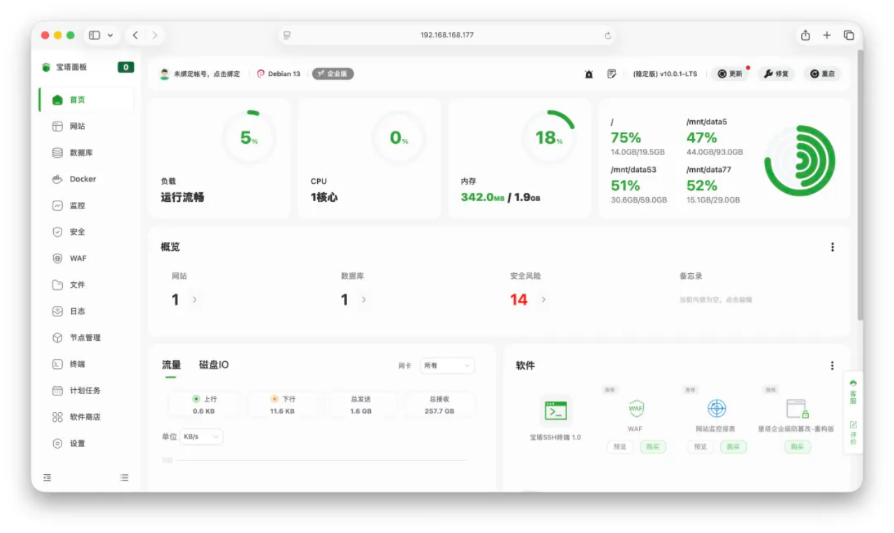 自从1panel出来以后,面板竞争比较激烈,宝塔很多之前的企业级功能,现在都免费了